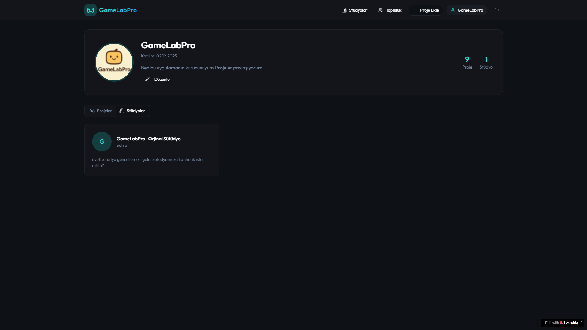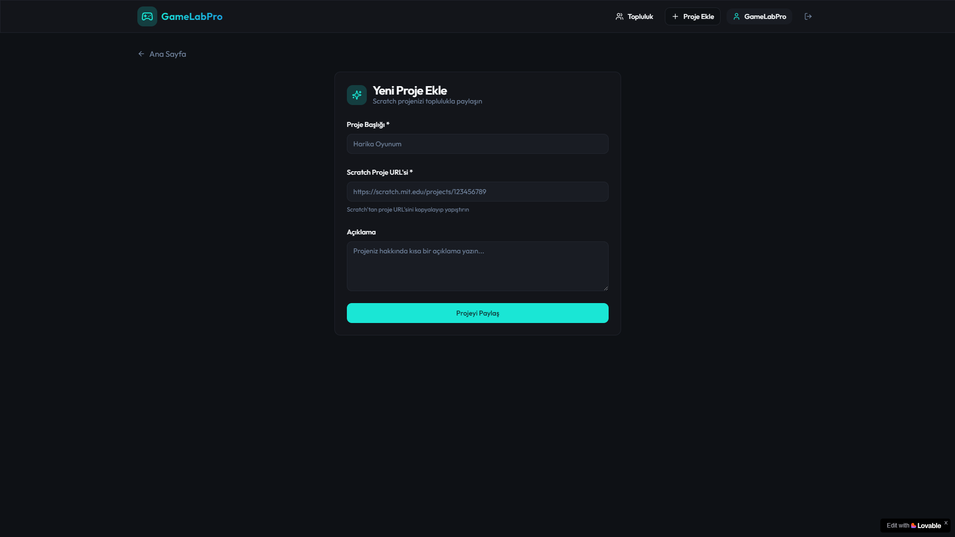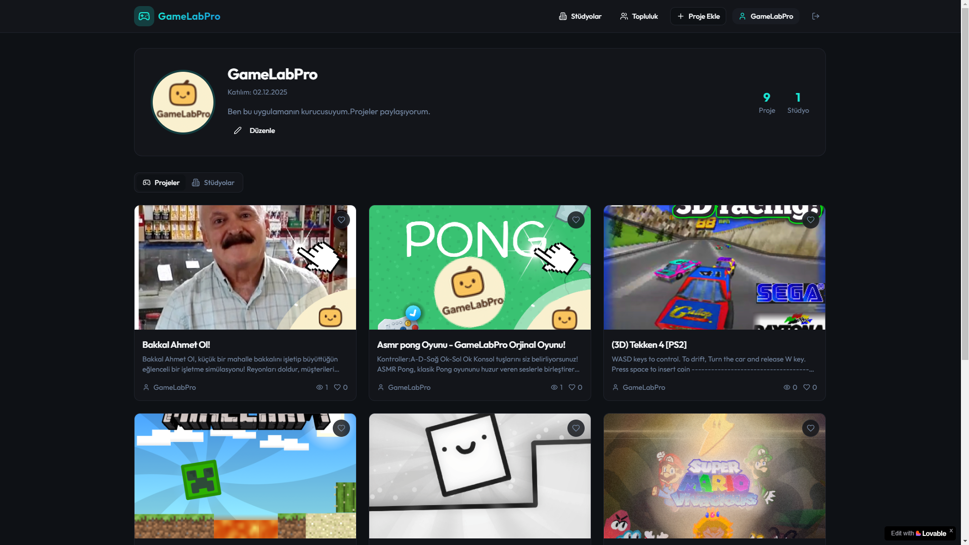 Hayal gücünü serbest bırak, projelerini dünyayla paylaş ve yaratıcı yolculuğuna GameLabPro’da hız kat! 🚀🎮✨